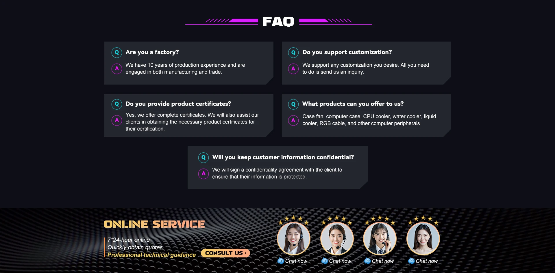 Belangrijkste producten:Case fan,pc case, cpu koeler, vloeibare koeler, luchtkoeler